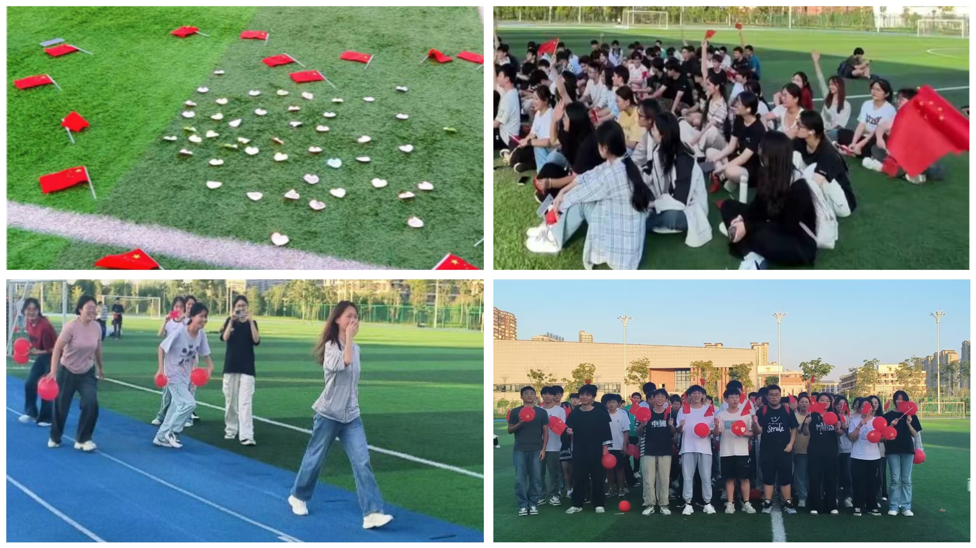 电子233、234团支部组织同学们积极参与“四史”知识问答,内容涵盖了国庆历史、国家发展战略、社会主义核心价值观等知识点,团员青年在精心准备的卡片上写下对祖国母亲的深情祝福,一句句真挚的话语,组成了一个大大的“心”形,寓意着同学们与祖国心连心。承载着同学们对祖国的美好祝愿和无限热爱。他们还组织了红色气球接力、你画我猜等多种小游戏,活动在同学们齐唱《歌唱祖国》的歌声中结束,现场气氛热烈,洋溢着浓浓的爱国情怀。