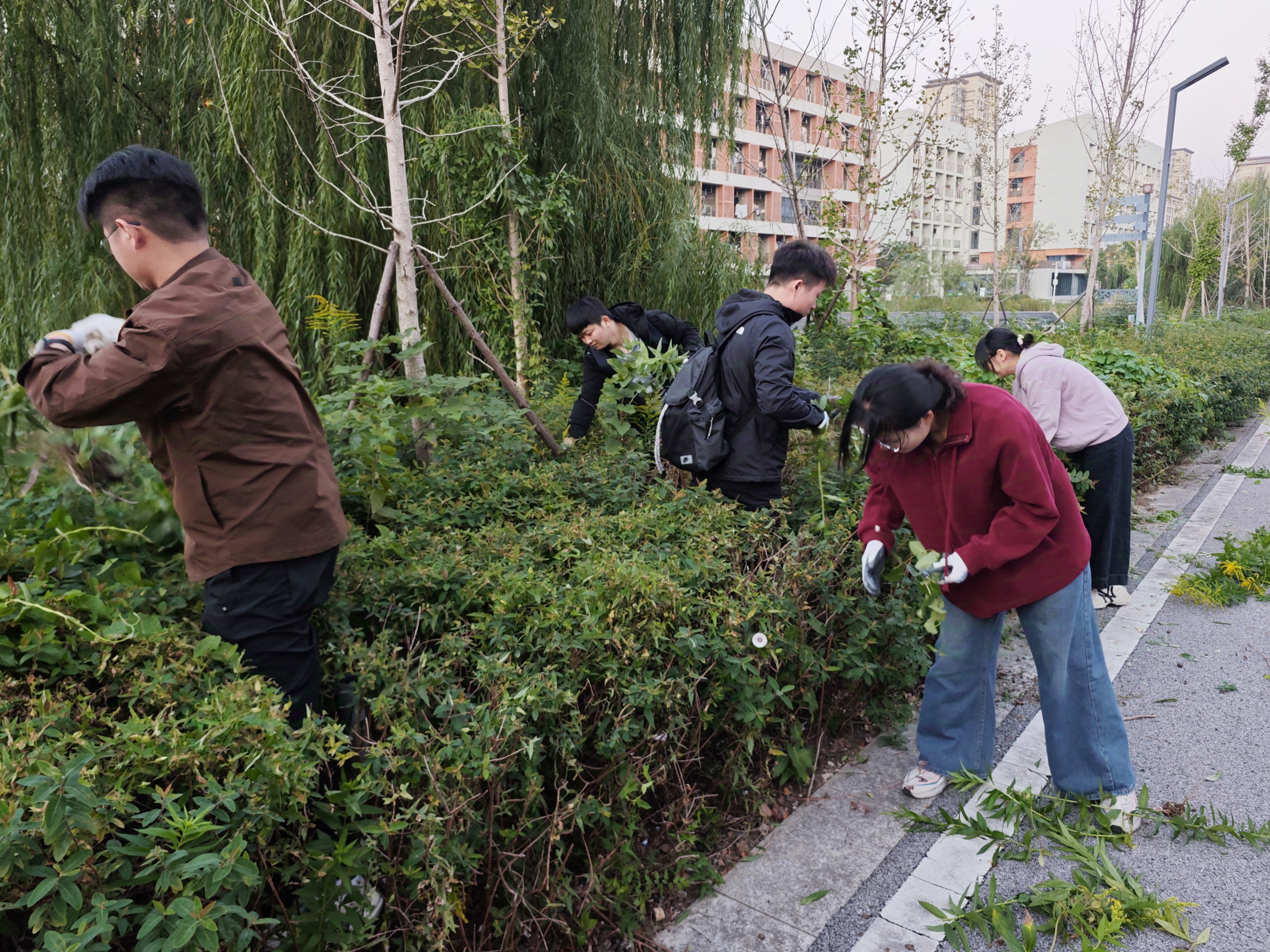 随后在校区管委会和物业的指导下,为同学们进行了物种辨别和定点清除的注意事项。活动现场,师生们热情高涨,积极参与。大家佩戴手套,对校园内的“加拿大一支黄花”进行了全面的清除,大家不仅体验到了劳动的乐趣,也增强了党员责任感和荣誉感。