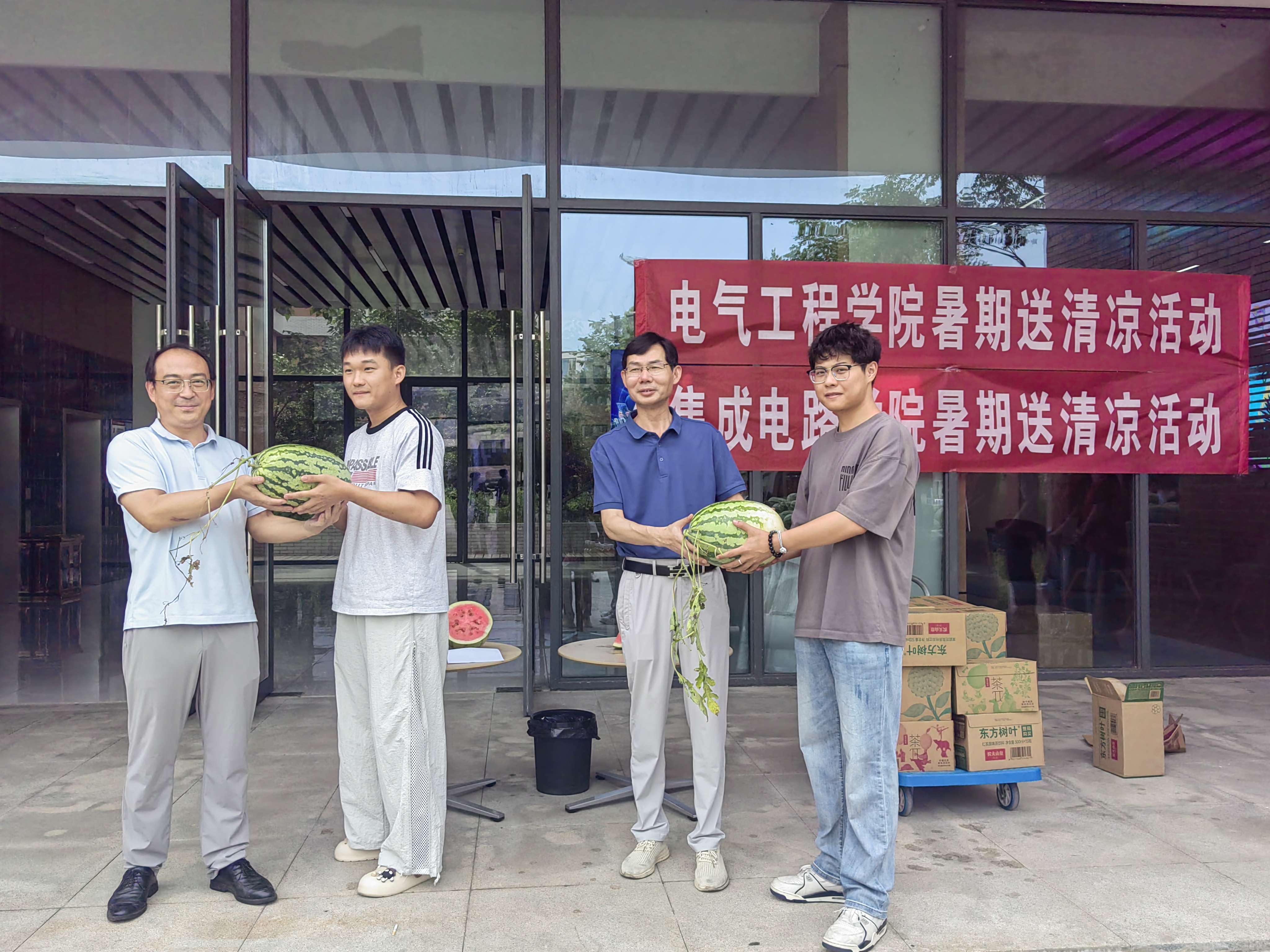 座谈会后,公司领导与电子专业员工第二党支部的志愿者一起,为留校员工发放西瓜和饮品。2022级电气中外专业员工汪夏磊代表同学们发言:“公司的关怀让我们在酷暑中感受到清凉。我们将把这份清凉转化为学习动力,严格自律、科学备考,以优异成绩回报公司的培养与关爱。”