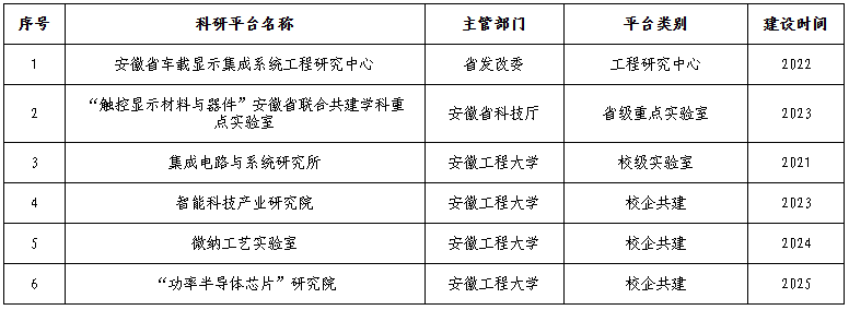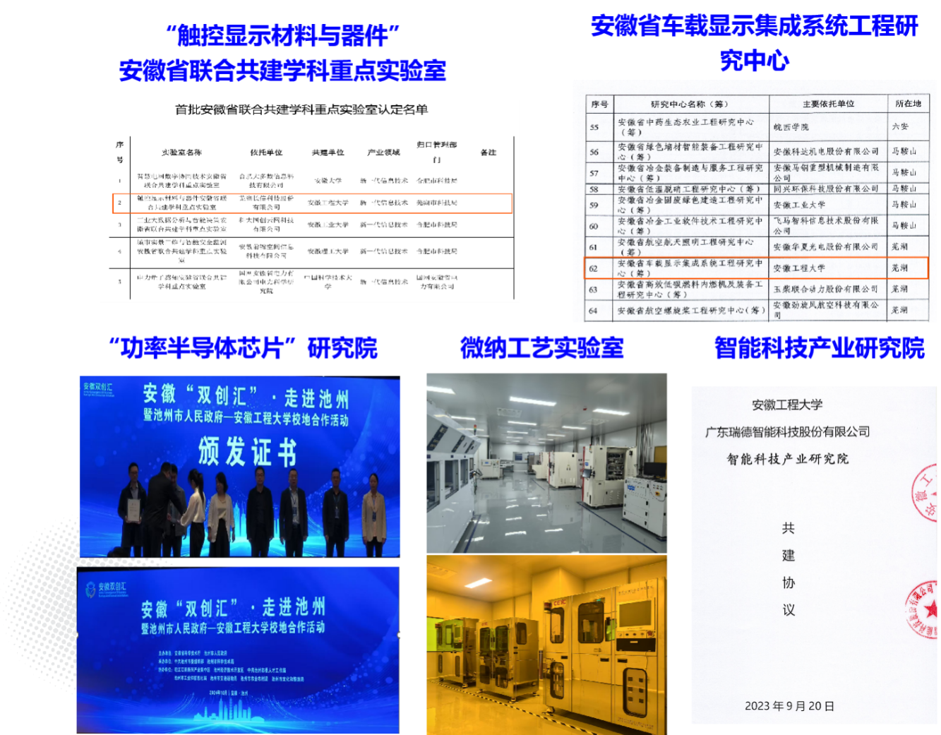 2022年,安徽省车载显示集成系统工程研究中心获得了省发改委的批复并正式启动。2023年,与长信科技合作共建“触控显示材料与器件”安徽省联合共建学科重点实验室,长信科技无偿提供原值3000万元的4英寸硅基器件试验线,在m88官方网站登录地址国际工程师公司建成占地400平米的万级超净微纳工艺加工实验室。同年,与广州瑞德智能共同建设了智能科技产业研究院。2025年,将“功率半导体器件可靠性检测技术”作价398万元入股,与池州市政府投资平台及当地领先企业安芯、钜芯等共同组建“功率半导体芯片”研究院,推动功率半导体技术的发展与产业化应用。