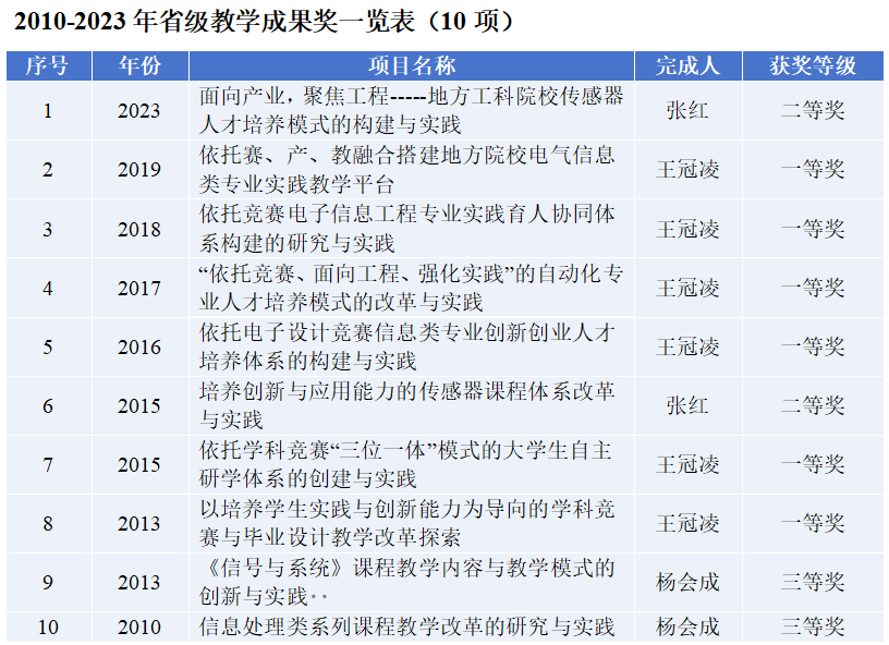 27 | 张明艳 | 2023年第七届全国高等公司电子信息类专业青年教师授课竞赛决赛 | 三等奖 | 工业和信息化部教育和考试中心;全国高等公司电子信息类青年教师授课竞赛组委会 | 2023.10 |