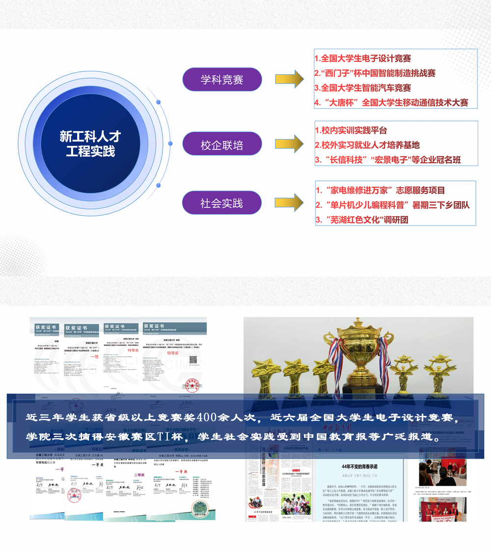 公司坚持“以赛促学、校企联培、实践育人”三维联动,将工程实践贯穿人才培养全周期:构建“双创入门—团队遴选—导师跟进—比赛培育”四阶竞赛链,在智能车、电子设计、智能制造等顶级赛事中保持国奖“不断线”,近三年省级以上奖项超400人次;携手长信科技、宏景电子、佑赛科技等企业设立冠名班、共建实验室,依托“紫云英人才计划”与产业需求精准对接;坚持实践育人,深耕“专业+志愿服务”,打造家电维修、少儿编程、红色调研等品牌项目,引导员工把论文写在祖国大地上,实现创新能力、社会担当与就业竞争力的同步跃升。