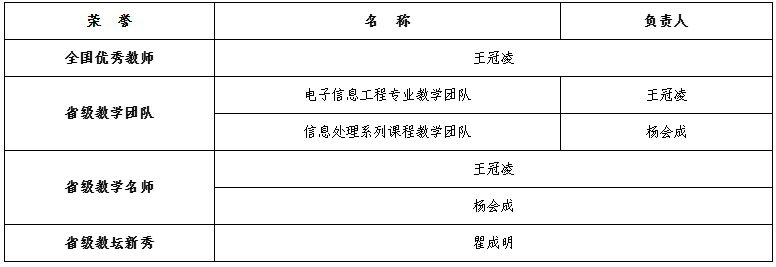 公司拥有1名全国优秀教师,“信息类学科竞赛”、“信息处理类序列课程”2个省级教学团队,2名省级教学名师,1名省级教坛新秀。